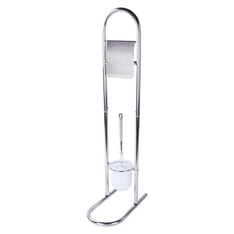 Изделие представляет собой эргономичную напольную стойку с держателем для туалетной бумаги и подставкой для ершика. Стойка и держатель для туалетной бумаги изготовлены из хромированной стали. Ершик и подставка для ершика изготовлены из пластика. Ершик входит в комплект. Размер - 160х785х300 мм.