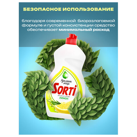 Средство для мытья посуды SORTI "Лимон" – это усовершенствованная формула средства, обогащенная натуральным соком лимона, проникает сквозь жир и выталкивает его наружу, не повреждая поверхность посуды. За счёт густой консистенции продукт отлично пенится, экономично расходуется и легко смывается водой. Отмоет посуду до блеска без лишних усилий и без разводов. Гелевая основа позволяет использовать SORTI "Лимон" для мытья посуды из разных материалов