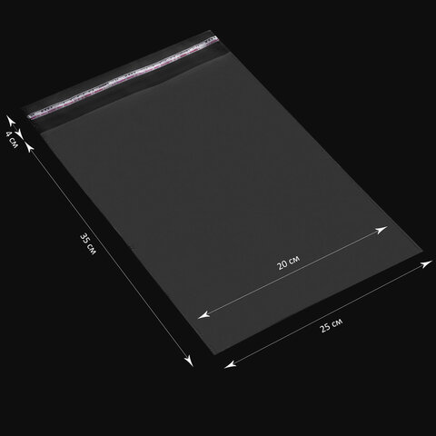 Пакет БОПП с клеевым клапаном, КОМПЛЕКТ 100 шт., 25х35+4 см, толщина 30 мкм, с усиленным швом