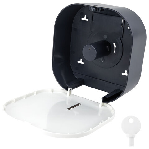 Антивандальный корпус изготовлен из ударопрочного ABS-пластика. Предназначен для подачи профессиональной туалетной бумаги в рулонах с намоткой до 200 м. Обеспечивает высокий уровень гигиены и комфортную подачу туалетной бумаги. Имеется окошко для контроля остатка расходных материалов. Сочетается с расходными материалами других производителей. Оборудован самозахлопывающимся замком с ключом. В комплект входят крепежные материалы для установки. Размер – 255х262х105 мм.