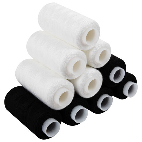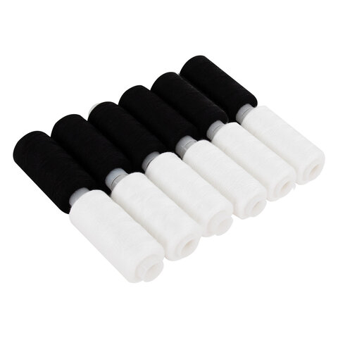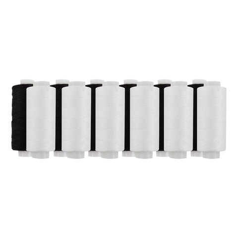 Тип ниток: ЛЛ Серия: Швейные Количество цветов: 2 Количество в комплекте: 12 шт. Длина намотки: 200 м Особенности: армированные Материал ниток: 100% полиэстер Цвет: белый/черный