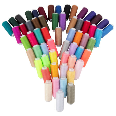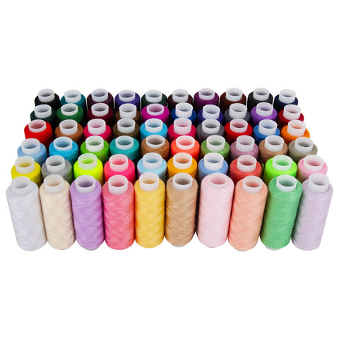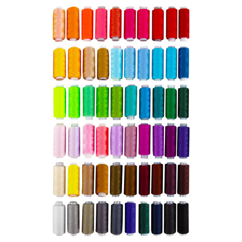 Тип ниток: 40/2 Серия: Швейные Количество цветов: 60 Количество в комплекте: 60 шт. Длина намотки: 200 м Материал ниток: 100% полиэстер Цвет: ассорти