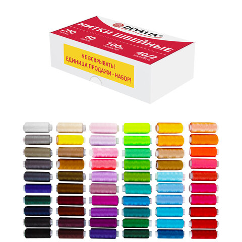 Набор ниток DEVELIA характеризуется высоким качеством исполнения. Нитки в наборе применяются для всех видов одежды, обладают отличными пошивочными свойствами и подходят как для ручного шитья, так и для всех видов швейных машин.