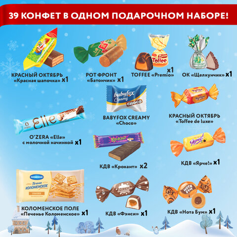 Тип товара: новогодний подарок Упаковка: жестяная упаковка Масса нетто: 600 г Количество конфет в наборе: 39 шт. Дизайн: СЛАДКОЕЖКА Производитель: Мосупак Срок годности: 6 мес. Высота: 16.5 см Ширина: 16.5 см Глубина: 11.5 см