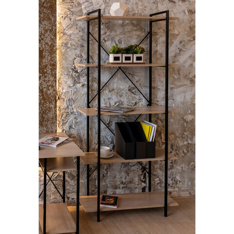 Стеллаж на металлокаркасе BRABIX "LOFT SH-003", 600х350х1500 мм, 5 полок, цвет дуб...
