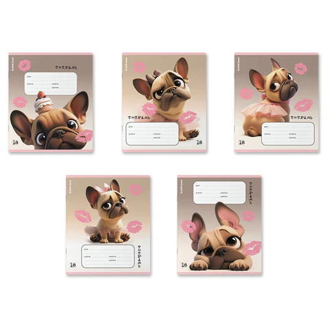 Тетрадь 18 л., клетка, выборочный УФ-лак, ERICH KRAUSE, "Frenchie" (микс в спайке), 64834