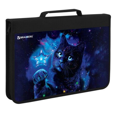 Папка на молнии BRAUBERG А4 с ручкой, с органайзером, 1 отделение, "Star cat", 274475