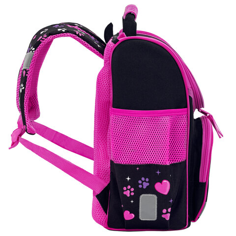 Форма ранца: классический с верхней крышкой Серия: BASIC Дизайн: Let's play Пол ребенка: для девочек Спинка: анатомическая, вентилируемая, формоустойчивая Кол-во отделений: 1 Перегородка в основном отделении: да Кол-во карманов: 3 Светоотражающие элементы: да Боковые карманы: да Фронтальный карман: да Регулируемые лямки: да Вентилируемые лямки: да Материал спинки: спонжевые панели анатомической формы Материал дна: прорезиненный материал Персонализация: расписание уроков Цвет: черный/розовый Размер: 35х28х18 см Длина лямок: 76 см Объем: 14 л Вес: 0.95 кг
