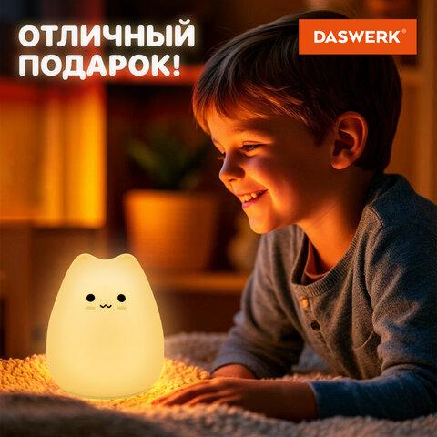 Силиконовый ночник DASWERK предназначен для мягкого освещения пространства. Этот милый котик станет не только забавным элементом декора, но и поможет владельцу уснуть в комфортной обстановке.