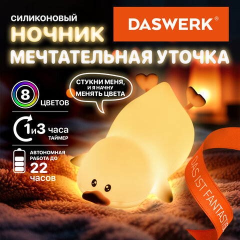 Силиконовый ночник DASWERK предназначен для мягкого освещения пространства. Эта милая утка станет не только забавным элементом декора, но и поможет владельцу уснуть в комфортной обстановке.