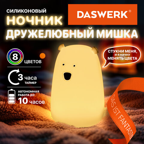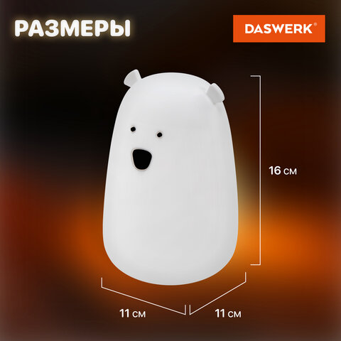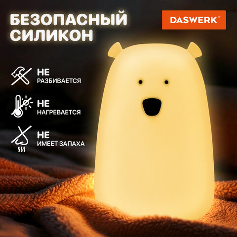 Силиконовый ночник DASWERK предназначен для мягкого освещения пространства. Этот милый медведь станет не только забавным элементом декора, но и поможет владельцу уснуть в комфортной обстановке.
