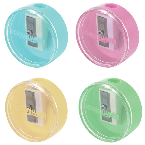 Прозрачный контейнер для сбора стружки дает возможность визуально контролировать уровень заполнения и вовремя удалять стружку. Приятные пастельные цвета не позволят точилке затеряться на парте или столе среди других принадлежностей.