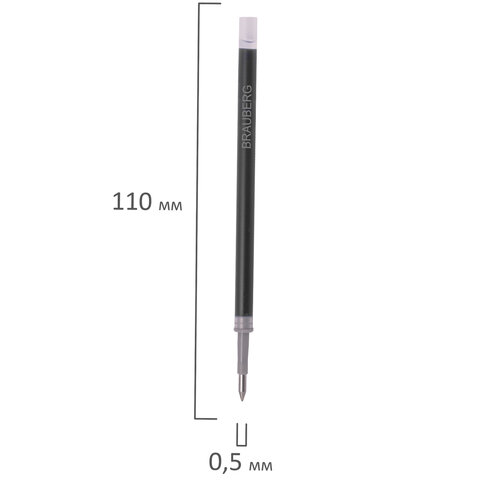 Стержень гелевый BRAUBERG 130 мм, ЧЕРНЫЙ, узел 0,5 мм, линия письма 0,35 мм, 170167
