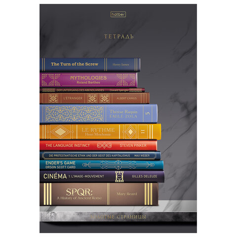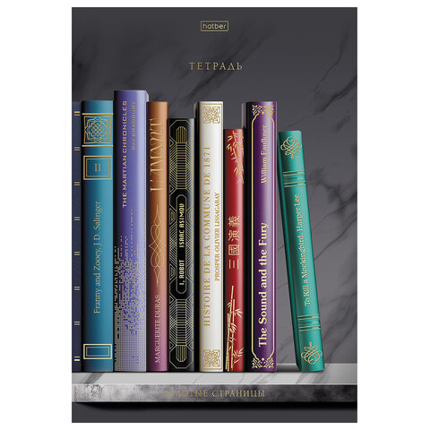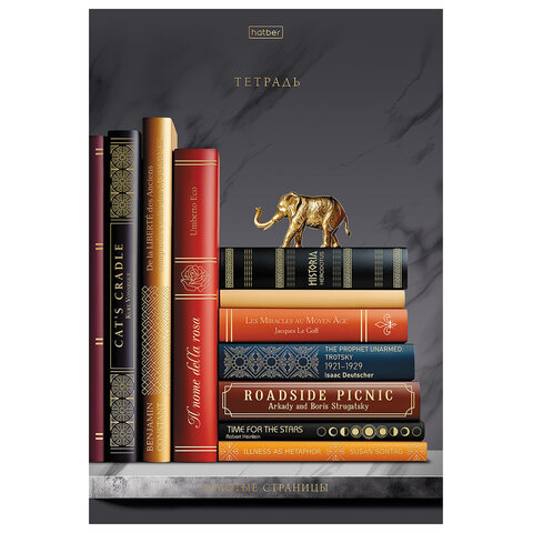 Тетрадь А4 формата, 96 листов. Материал обложки – мелованный картон. Дизайн изделия дополнен тиснением с матовой ламинацией. Внутренний блок – офсетная бумага плотностью 60 г/м2, клетка. Тип скрепления – скоба.