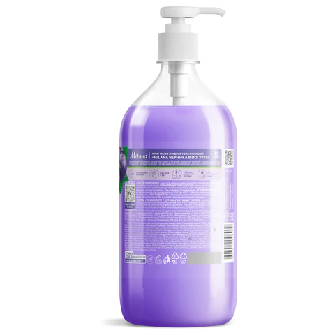 Объем / Вес: 1000 мл/г Мыло-крем: да Подходящий тип кожи: для всех типов Эффект от использования: увлажнение Серия: SOAP Отдушка: черника в йогурте Тип дозирования: дозатор Вид упаковки: флакон Цвет: сиреневый