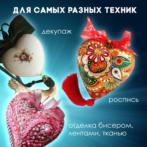 Предоставляют безграничное число возможностей для реализации самых разнообразных творческих идей. Изготовлены из пенопласта белого цвета. В наборе 2 заготовки в форме сердец. Предназначены для детей от 3 лет. Размер - 100х100 мм. Поставляются в пакете с европодвесом.